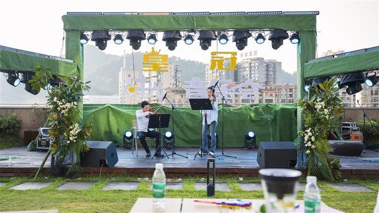 開局活動安排在湘西皇冠國際酒店,在酒店的五樓空中花園舉辦了一場“時光音樂會”,聽?wèi)雅f歌曲,吃燒烤喝啤酒看足球。