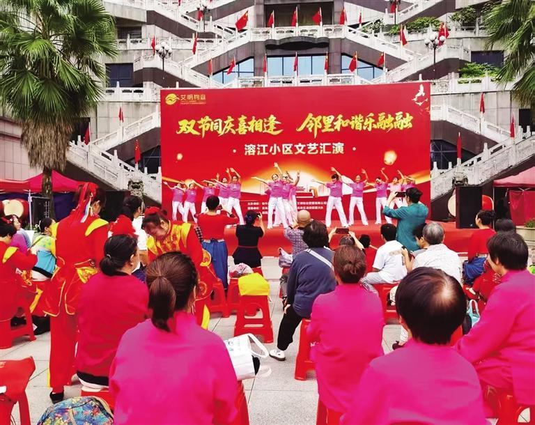 國慶、中秋“雙節”將至,9月27日,湘西高新區溶江小區,吉鳳街道牯牛坪社區與溶江小區的物業公司聯合舉辦文藝匯演,豐富社區居民精神文化生活,共同歡歡喜喜迎佳節。 團結報全媒體記者 李再興 攝