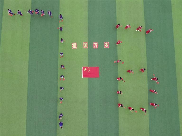 9月30日,保靖縣清水坪學校的師生與國旗合影,表達對祖國的熱愛和美好祝福,迎接國慶節的到來。 俞采華 易晗 攝