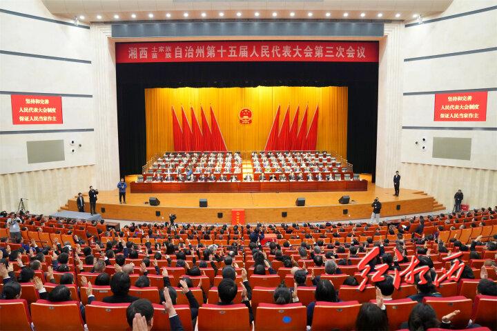 湘西網(wǎng)1月13日訊(全媒體記者 付丹 通訊員 李瑋)1月12日下午,湘西州十五屆人大三次會議圓滿完成各項議程,在武陵山大劇院勝利閉幕。