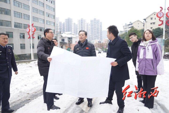 虢正貴在吉首市財政局至吉首西高速公路收費站路段看望慰問奮戰在抗冰除雪一線的干部職工。
