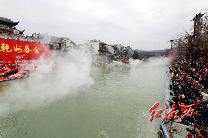 2月12日,一年一度的乾州春會(huì)在吉首市萬(wàn)溶江畔乾州古城三門開碼頭“龍”重上演,有“祭春、游春、迎春、演春”4個(gè)環(huán)節(jié),來(lái)自全市各鄉(xiāng)鎮(zhèn)街道的600余名非遺傳承人、文化志愿者、三區(qū)人才及民間文藝骨干用“游春”的形式迎接新春到來(lái)。