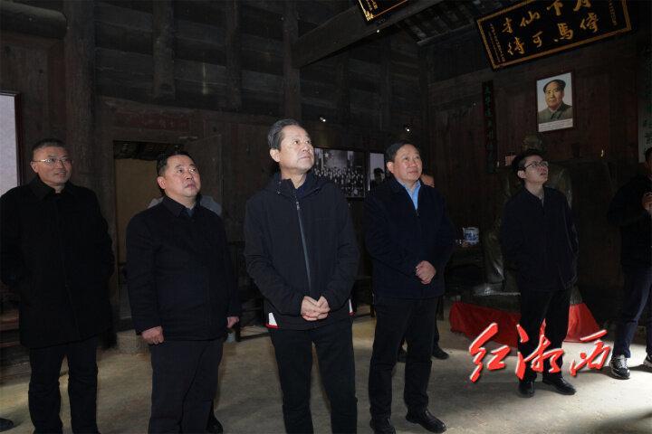 在毛壩鄉李燭塵故居,虢正貴與基層干部、名人后裔深入交流,認真了解故居保護利用和修繕、周邊環境改善等情況。他強調,要深入挖掘名人文化資源價值,完善修繕維護方案,加強日常管理,把名人故居保護修繕與鄉村振興、紅色教育、文化旅游等結合起來,使文化資源發揮更大的歷史價值、文化價值和經濟價值。