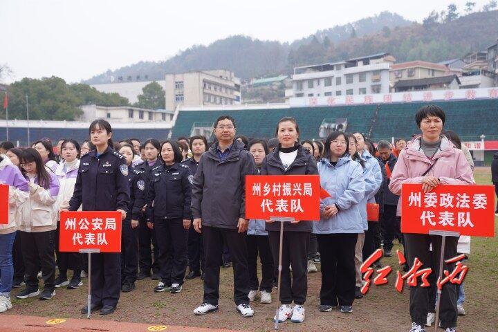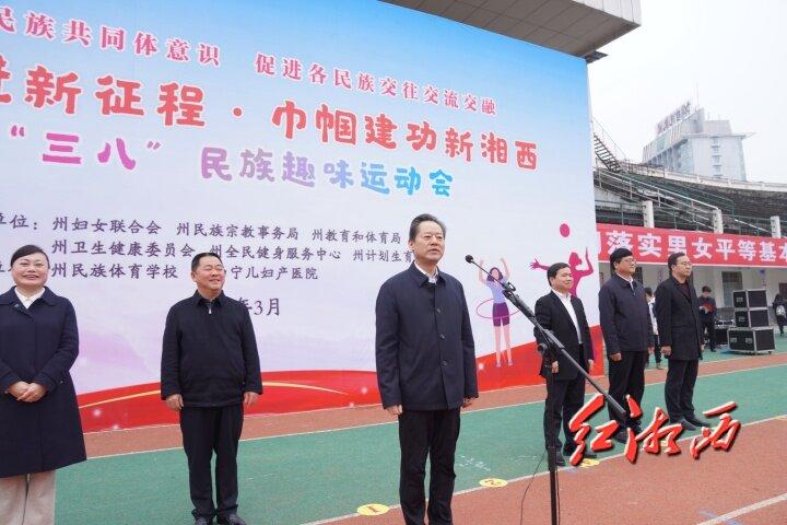 湘西網3月7日訊(全媒體記者李再興 肖穎 通訊員 彭敏)3月6日上午,在第114個“三八”國際婦女節來臨之際,由湘西州婦聯等6個部門聯合主辦的湘西州“跟黨奮進新征程·巾幗建功新湘西”慶“三八”民族趣味運動會在州體育中心舉行。州委書記虢正貴出席并宣布運動會開幕。州委常委、州委組織部部長、州委統戰部部長賈珍文主持開幕式。