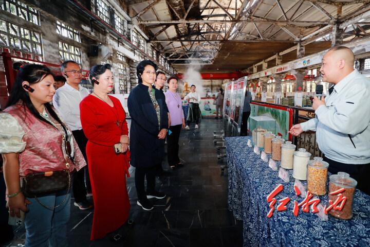 陳水珍一行首先來到吉首市乾州古城,察看乾州文廟、非遺街區(qū)保護和建設情況;隨后前往酒鬼酒公司,參觀酒文化陳列館、釀酒車間,了解企業(yè)發(fā)展歷程、品牌文化、生產(chǎn)工藝、銷售經(jīng)營、項目建設及下步規(guī)劃情況。