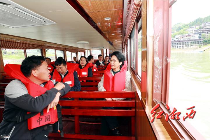 陳華乘船沿途調(diào)研古丈永順酉水河段游船安全生產(chǎn)情況。