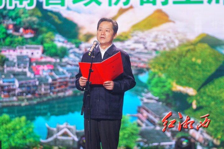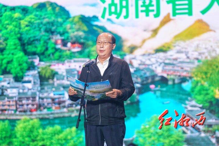 虢正貴代表州委、州政府向參加活動的嘉賓表示歡迎。他表示,湘西州是精準扶貧首倡地,是湖南省唯一同時擁有世界文化遺產、世界地質公園的市州,是美麗中國版圖中的一片詩意山水。生態是湘西最大的優勢,綠色是湘西最美的底色,湘西州將以這次活動為契機,深入學習貫徹習近平總書記考察湖南重要講話和指示精神,錨定“三高四新”美好藍圖,堅持全領域轉型、全方位提升、全地域建設、全社會行動,協同推進生態環境保護和綠色低碳發展,著力繪就生態秀美、環境優美、產業富美、民風淳美、城鄉和美的美麗湘西新畫卷,為建設美麗中國、美麗湖南貢獻更多湘西力量。