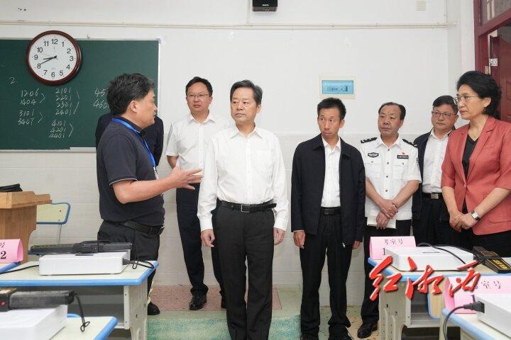 虢正貴、陳華先后到吉首市第一中學考點、湘西州民族中學考點,看望慰問在考點值班值守的工作人員,走進考場、考務辦公室、視頻監控室、廣播信號室、師生食堂,詳細檢查考生入場安檢、考場布置、考務安排、涉考設備安全運行、應急處置、安全保密等工作。虢正貴囑咐相關部門負責人,要切實增強責任感,用心用情做好服務保障工作,嚴格考務規范,強化考場管控,關心關愛考生,營造安全、安靜、安心的考試環境,確保高考平安有序。虢正貴、陳華祝愿全州每一位考生堅定信心、從容應考,發揮最好水平,考出最好成績。