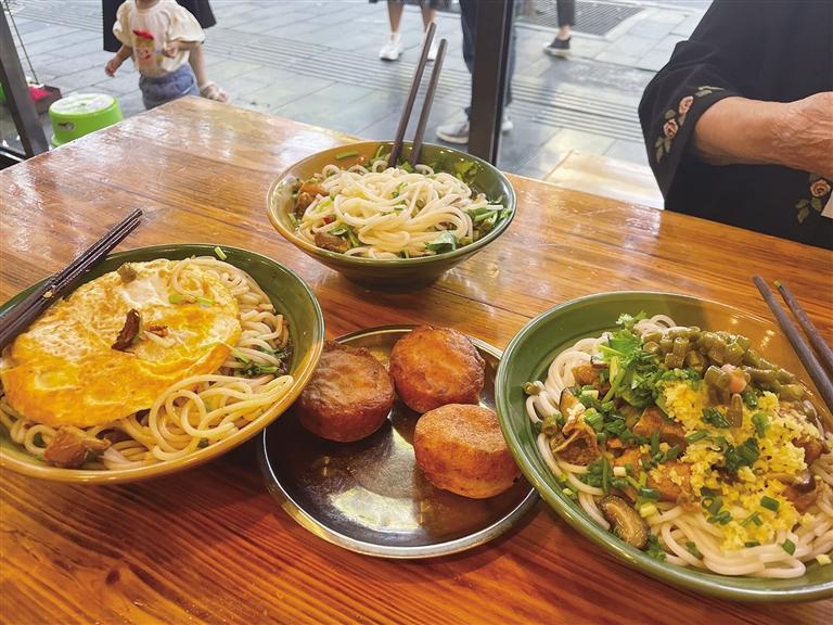 廠里的干米粉,大部分會賣給餐館,小部分留給村民換購。村民背來一斤大米,添上少許加工費,就可以換取一斤干米粉。但大多數(shù)村民都認為,把自家的大米加工成濕米粉更劃算,所以選擇軋粉的人更多。那時,農(nóng)村剛剛通電,白天經(jīng)常停電,父母親只能選在夜晚軋粉。看到天黑了有些村民還在等候軋粉,母親于心不忍,便抽空煮米粉給他們吃。雖然只是一碗簡單的清湯粉,村民們卻吃得有滋有味,都說老板仁義。這無形之中為自家米粉做了宣傳,廠里的生意越來越紅火,鄰村也時有村民趕來軋粉。