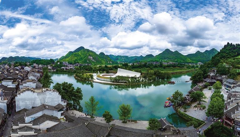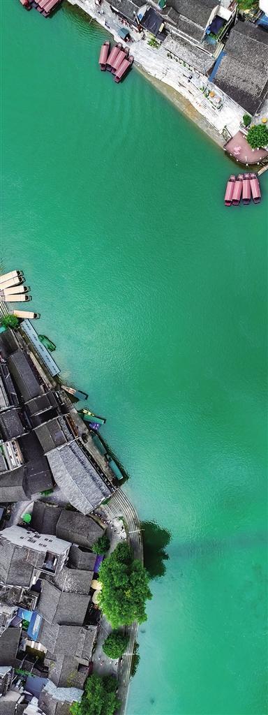 “茶峒地方憑水依山筑城,近山的一面,城墻如一條長蛇,緣山爬去。臨水一面則在城外河邊留出余地設碼頭,灣泊小小篷船。”