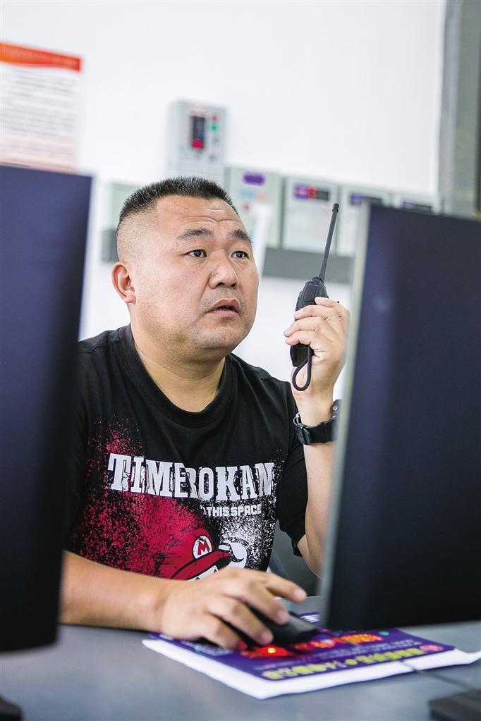 鄒武成在監控室里與校園外圍的巡邏人員互通信息,確保校園安全。 團結報全媒體記者 楊賢清 攝