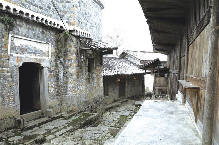 從下街到中街,走了差不多五六百米高低不平的石板路,更多被情緒左右了的除了涼到骨頭里的天氣,還有清冷的長街以及凋敝的大屋。當(dāng)年的進(jìn)士府邸、商賈大院人去樓空,生銹的鐵鎖,鎖住往事。一路上,我只看見三戶人家半掩大門,一戶的男主人在織漁網(wǎng),他穿得極少,也不修邊幅,但談吐甚是溫雅,讓人如沐春風(fēng);一戶的男主人在整背籠系,見我們同他攀談,轉(zhuǎn)身就去了屋內(nèi)端一簸箕柑橘,硬塞在我們手中;另一戶是一個(gè)年輕的外嫁女子帶著女兒到賈市街小住,原因是父親去世不久,要陪伴母親,而母親早早地就到集市打牌消遣時(shí)光去了。她的女兒約莫五六歲的樣子,很活潑,蹦蹦跳跳地,跟在我們身后,有時(shí)走進(jìn)一幢掉了窗牖的大院,有時(shí)穿過門前屋后兩頭破敗了的樓閣。穿堂風(fēng)“嗖嗖”吹著,女孩兒也不怕冷,小手在殘墻上捏了一團(tuán)雪,笑嘻嘻地跟我們說著山那邊的幼兒園,那里有許多天真可愛的小朋友,不像賈市街,只有外婆。