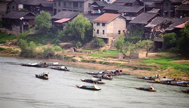 懷化辰溪柳樹灣沅水碼頭邊零散的吊腳樓與烏篷船隱約還有沈從文筆下的影子。
