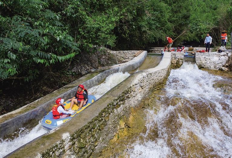 瀑源漂流以其獨(dú)特的自然風(fēng)光和刺激的漂流體驗(yàn),成為湘西今夏的旅游熱門(mén)打卡地。 團(tuán)結(jié)報(bào)見(jiàn)習(xí)記者 胡承鼎 攝