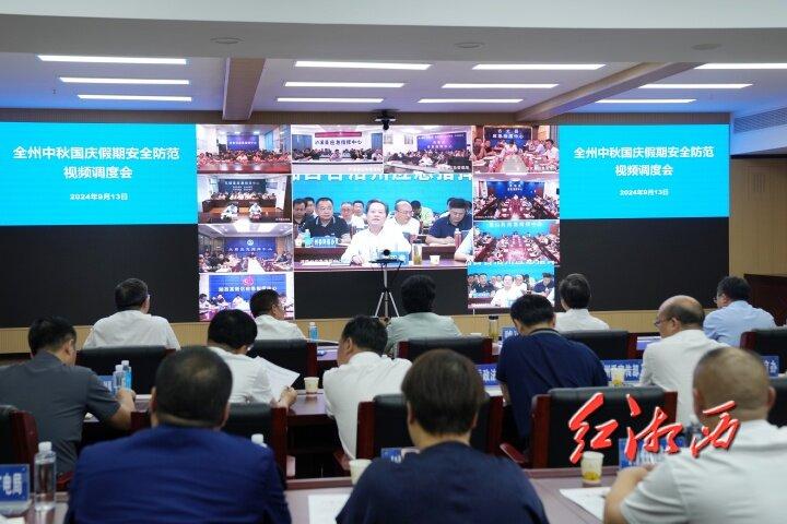 湘西網9月14日訊(全媒體記者 彭蕾)9月13日,湘西州委書記虢正貴主持召開全州中秋國慶假期安全防范視頻調度會。他強調,要進一步壓緊壓實安全生產責任,除隱患、防風險、促安寧,確保全州人民過上安定祥和的假期。州委副書記、州長陳華出席。州委副書記、花垣縣委書記廖良輝在花垣分會場參會。