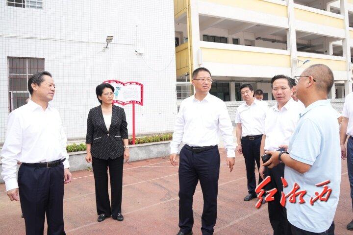 謝衛江、虢正貴在保靖縣岳陽學校詳細了解對口幫扶項目情況。