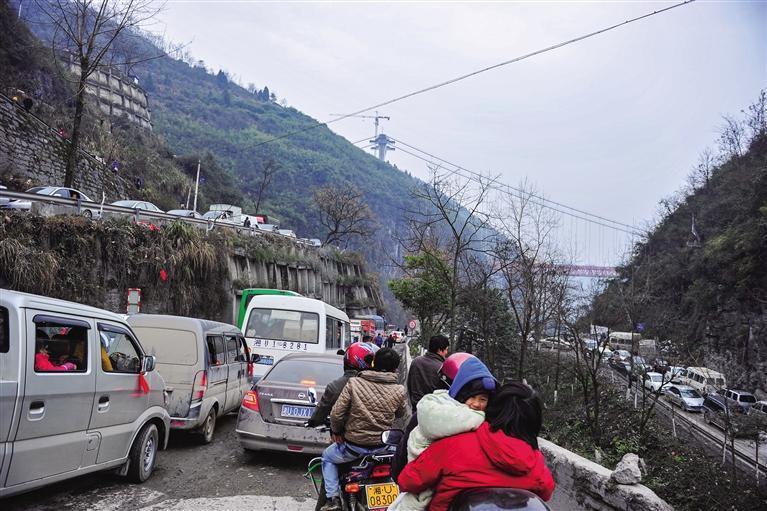 矮寨大橋通車前,矮寨盤山公路堵車是常態(攝 于2012年1月26日)。
