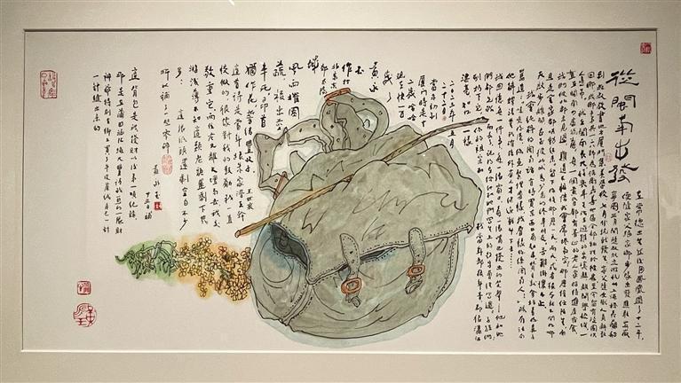 看完這個展覽,黃老因為認真而發出了分外耀眼的光芒。每一幅作品,從構思到色彩,從意境到細節,都飽滿生動,張力十足。有的作品上有動輒數百上千的題記,行文流暢,一氣呵成。很難想象是一位近百歲高齡的老人家在短短數年時間里獨立完成的。