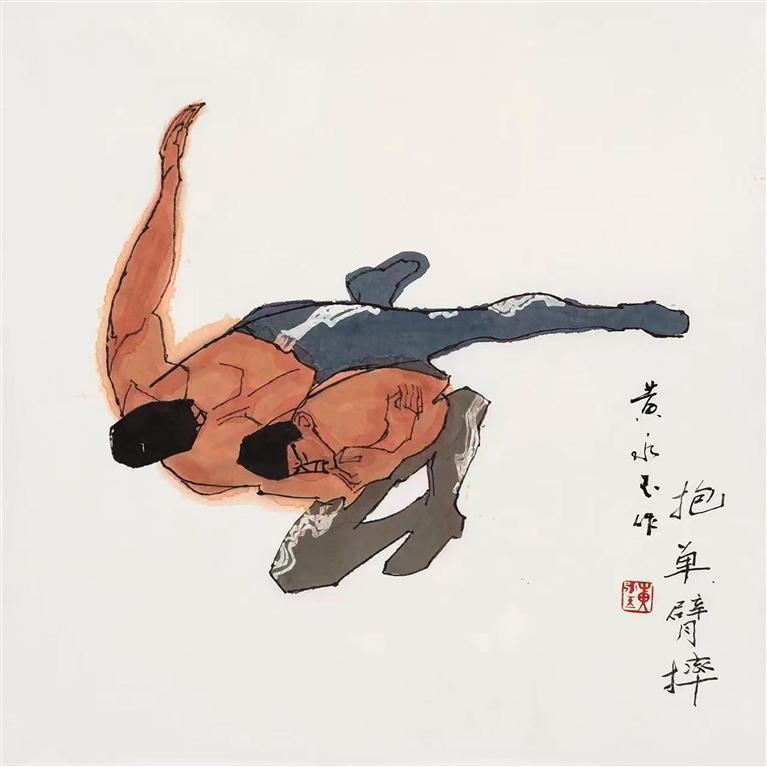 在他93歲時,喜歡上看摔跤,就仔細研究摔跤的專業動作,創作出一組作品,力求用寥寥數筆傳達出那種力與美。