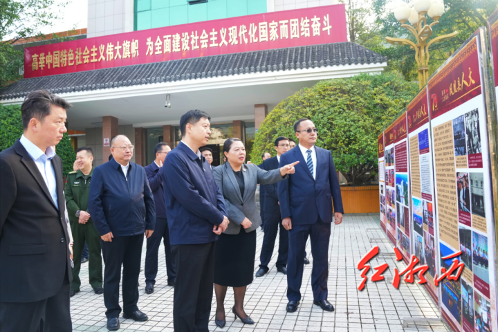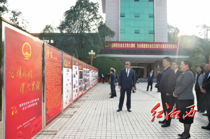 會(huì)前,與會(huì)人員參觀了湘西州人民代表大會(huì)成立70周年圖片展。