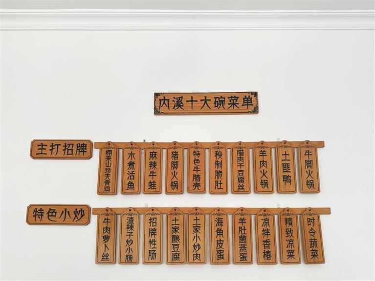 村民要是有大型團(tuán)宴,往往需提前一個月預(yù)訂。“你看,下周三一個村民家里蓋房子上梁,要請幫工們吃頓飯,首選我們內(nèi)溪十大碗。”吳進(jìn)培說,內(nèi)溪十大碗剛開業(yè)時,他沒想到除了游客外,本鄉(xiāng)的餐飲消費(fèi)需求居然這么大。
