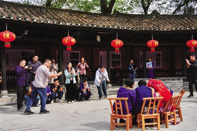 在永順縣雙鳳村,記者們拍攝土家族哭嫁表演。 團結報全媒體記者 楊賢清 攝