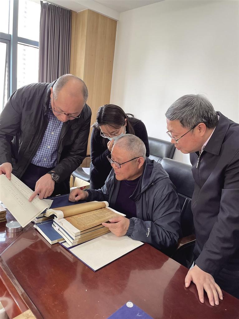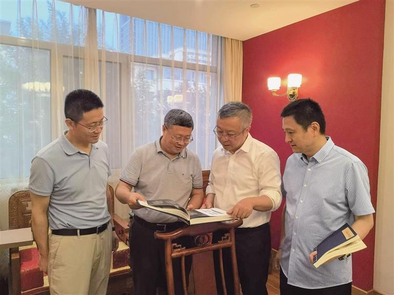 圖為彭衛(wèi)國(右一)正在和同事們認真審讀。