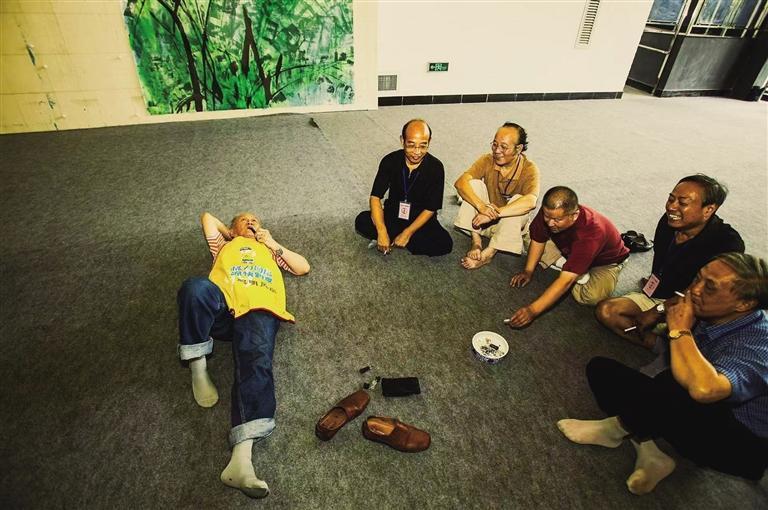 午間小憩時,與朋友們擺擺龍門陣,是無比愜意的事。看這個陣勢,大家都被黃老逗笑了,而他則不動聲色,自顧抽煙。給別人帶來快樂,自己肯定也是快樂的。