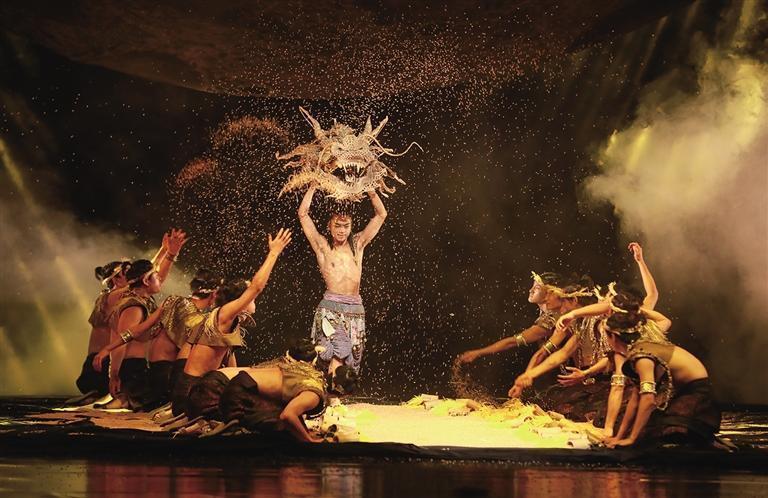 該劇表演總時(shí)長(zhǎng)100分鐘,歷時(shí)2年創(chuàng)作,融入1項(xiàng)世界級(jí)、12項(xiàng)國(guó)家級(jí)、20余項(xiàng)省州市縣苗族非物質(zhì)文化遺產(chǎn),通過(guò)講述苗族史詩(shī)故事,深刻表達(dá)具有強(qiáng)烈苗族特色的宇宙觀、時(shí)間觀、命運(yùn)觀,鮮活展示中華文明兼容并蓄、多元一體的總特征。12名湘西州非物質(zhì)文化遺產(chǎn)代表性傳承人參與編創(chuàng)和演出,湘西州眾多民俗專家、文化學(xué)者、鄉(xiāng)村民眾及文藝工作者為舞劇創(chuàng)作提供重要支持。