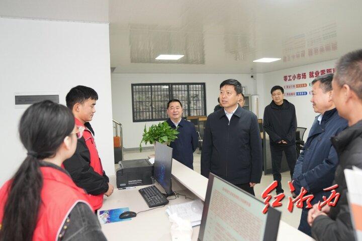 劉濤在芙蓉鎮(zhèn)易地扶貧搬遷集中安置區(qū)零工市場,調(diào)研居民就近就業(yè)、外出務(wù)工等情況。團結(jié)報全媒體記者 劉煒 攝