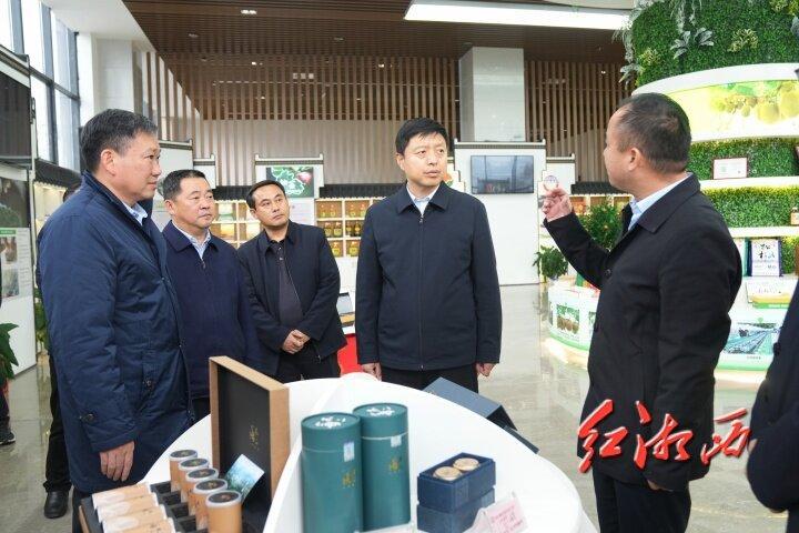 在永順國家現(xiàn)代農(nóng)業(yè)產(chǎn)業(yè)園特色農(nóng)產(chǎn)品展示廳,劉濤詳細(xì)了解柑橘、獼猴桃、莓茶等農(nóng)產(chǎn)品種植、加工、銷售情況。團結(jié)報全媒體記者 劉煒 攝