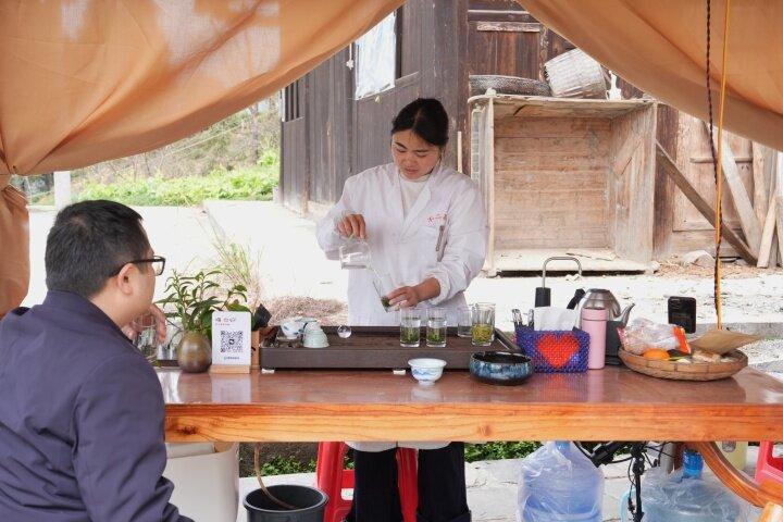 春茶采摘季,不僅呂洞山片區(qū)的村頭村尾轉(zhuǎn)型為茶葉交易“小市場”,就連加工作坊也都成為活脫脫的“展銷中心”。