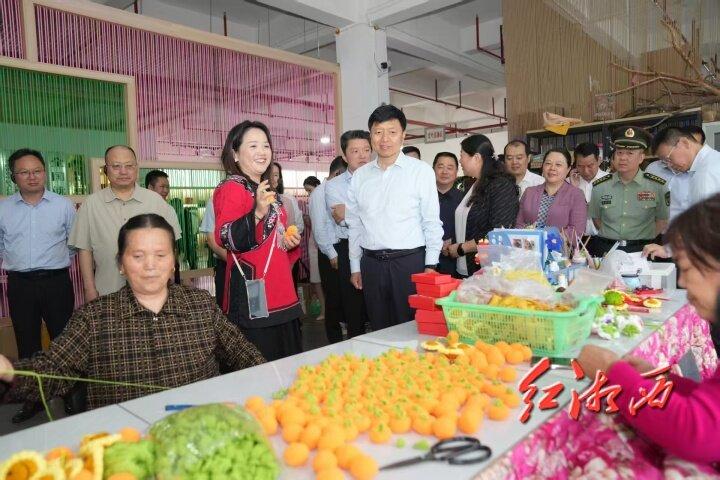 5月28日,與會人員觀摩龍山縣惹巴妹手工織品有限公司。團結報全媒體記者 劉煒 攝