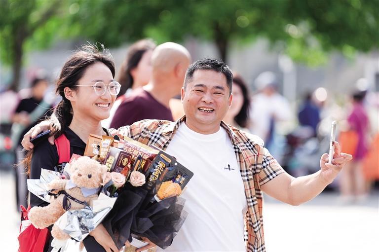 6月9日下午,吉首市第一中學考點,學生順利完成考試,陸續走出考場。他們表情輕松自在,一張張青春而富有活力的笑臉,洋溢著自信和對未來的憧憬。考點外,師長和親友們早已翹首以盼,看到考生們走出來,有的給孩子送上鮮花祝福,有的給孩子一個溫暖的擁抱,有的全家人一起合影留念……一幕幕溫馨畫面接連上演,定格孩子們的最美青春。 團結報全媒體記者 楊賢清 攝