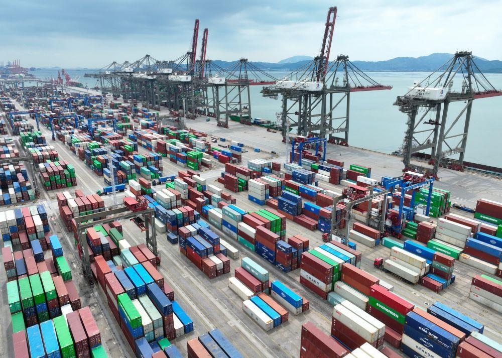 這是2024年10月15日拍攝的中國(福建)自由貿易試驗區廈門片區集裝箱碼頭(無人機照片)。新華社記者 姜克紅 攝