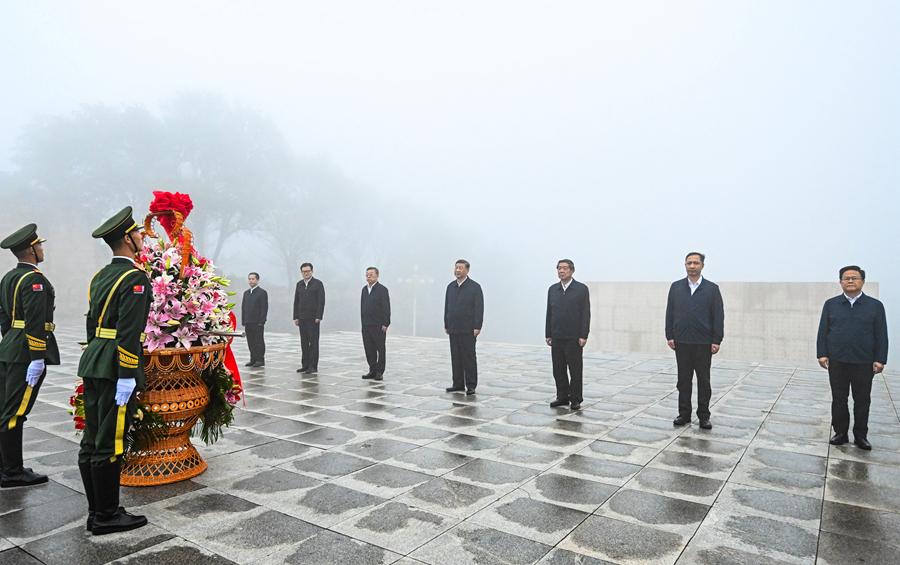 7月7日至8日,中共中央總書記、國家主席、中央軍委主席習近平在山西考察。這是7日下午,習近平在位于陽泉市獅腦山的百團大戰(zhàn)紀念碑廣場,向八路軍烈士敬獻花籃。新華社記者 謝環(huán)馳 攝