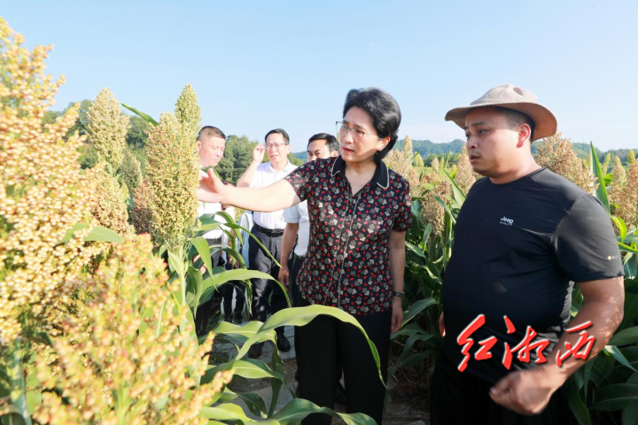 陳華到吉首市馬頸坳鎮(zhèn)竹寨村調(diào)研酒鬼酒股份有限公司原材料高粱基地建設(shè)。周興云 攝