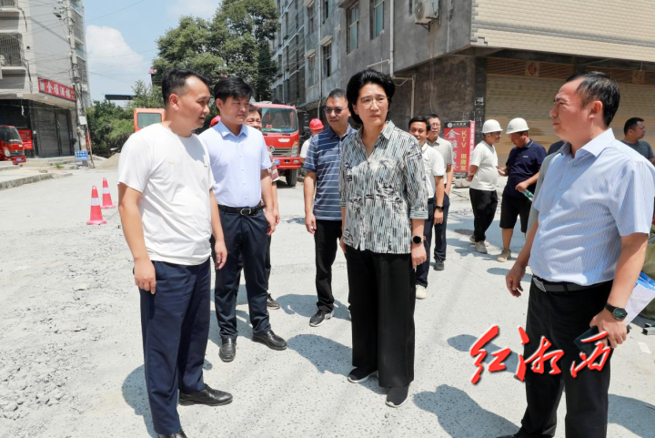 陳華到龍山縣華塘街道調研燃氣管網更新改造項目施工情況。周興云 攝