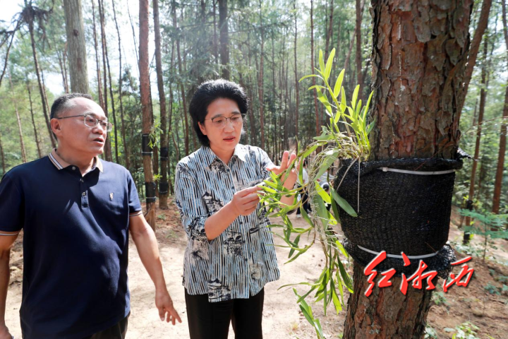 陳華到龍山縣石羔街道興堡中藥材基地調研林下中藥材種植及生產情況。周興云 攝