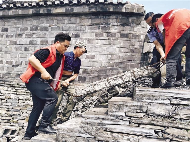 龍劍峰(左一)帶領村兩委開展人居環境整治。(圖片由受訪者提供)