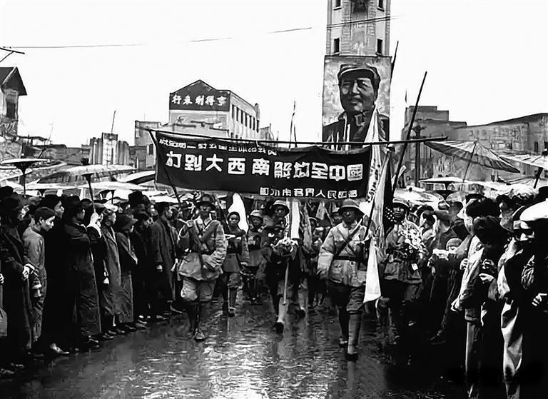 進軍大西南是解放全中國的最后一次戰略性戰役。渡江戰役勝利后,中共中央審時度勢,及時籌劃做出了向全國進軍的部署。1949年5月,毛澤東代表中央軍委,起草了《關于向全國進軍部署致各野戰軍首長的電報》,把進軍西南的神圣任務交給了第二野戰軍。
