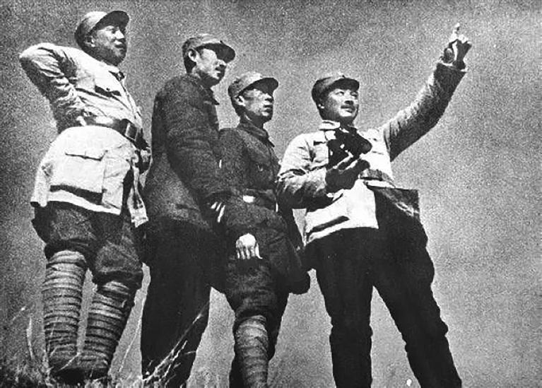 1937年10月,八路軍120師在雁門關伏擊戰前線。左起為:甘泗淇、關向應、周士第、賀龍。