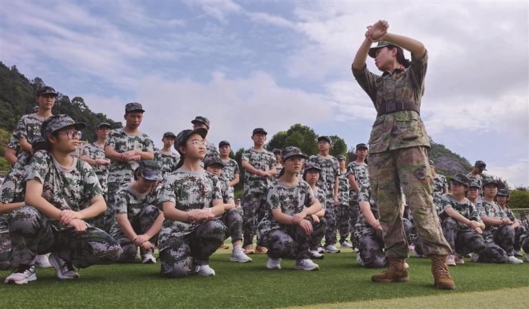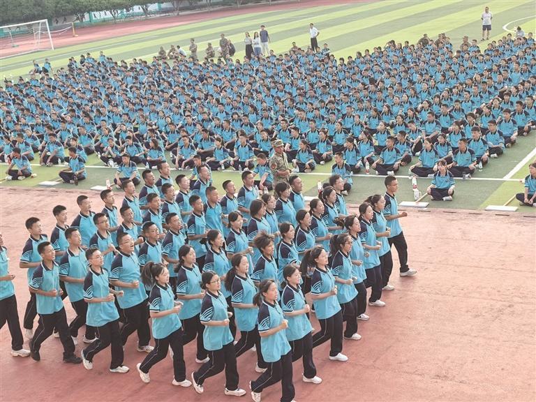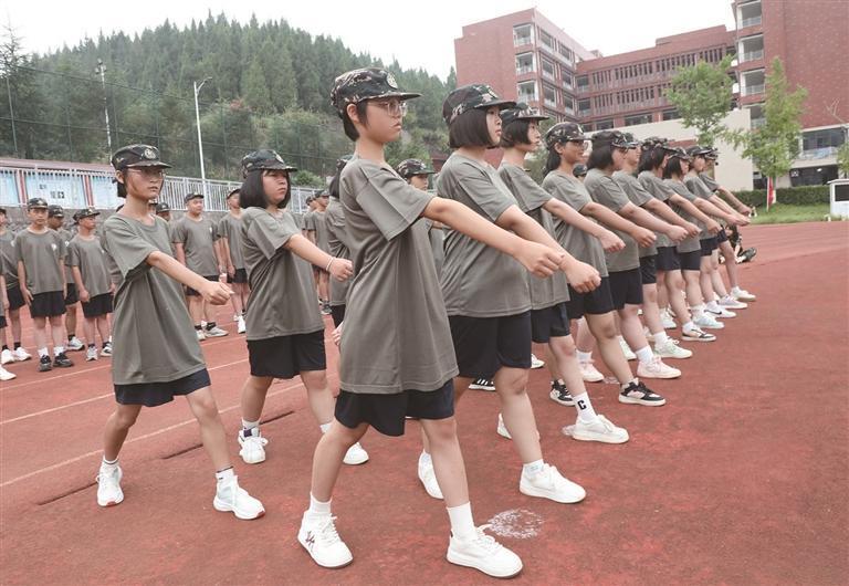 8月27日,永順一中高一新生們在教官的帶領下進行軍訓,強健體魄,磨煉意志。 白果 攝