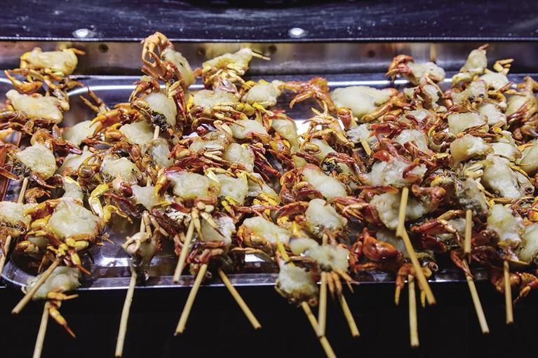 鳳凰的特色小吃炸螃蟹讓人垂涎三尺。