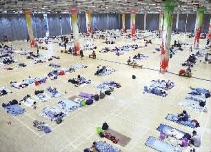 9月23日,在深圳大學粵海校區(qū)羽毛球館,避險群眾在場館內休息。