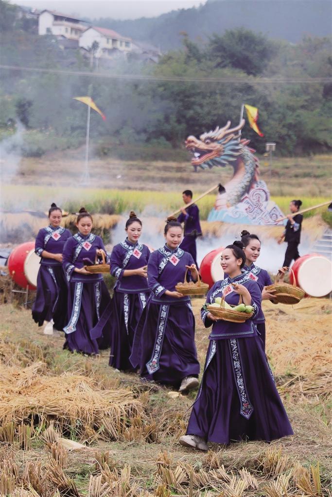 湘西網(wǎng)9月26日訊(全媒體記者 錢紹敏 伍珊珊 實(shí)習(xí)生 吳思陽 特約全媒體記者 包倫金)金秋送爽,谷穗飄香。9月23日農(nóng)歷秋分,一場以“弘揚(yáng)農(nóng)耕文化 助力鄉(xiāng)村振興”為主題的土家族曬龍谷暨農(nóng)民豐收節(jié)活動,在永順縣松柏鎮(zhèn)福建村熱烈啟幕,展現(xiàn)了土家族悠久的農(nóng)耕傳統(tǒng)與豐收喜悅,為當(dāng)?shù)厝罕姾退姆接慰头钌狭艘粓霆?dú)具魅力的民族文化盛宴。