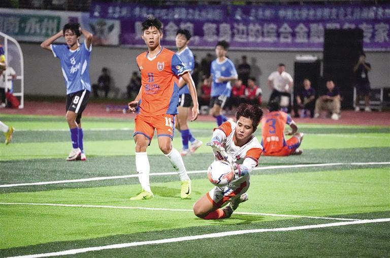 比賽第94分鐘,劉宇陽撲住永州隊的最后一腳攻門,對方球員遺憾地雙手抱頭,表情充滿絕望。 團結報全媒體記者 宿中元 攝