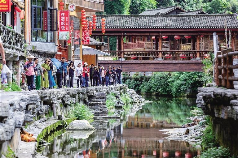 9月27日,世界旅游日,吉首市矮寨奇觀旅游區,游客在德夯苗寨游玩。隨著國慶、中秋雙節臨近,該景區游客逐漸增多,旅游逐漸“升溫”。 彭璟 攝