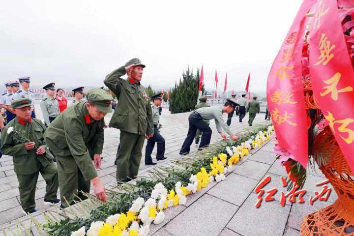 少年兒童和各界代表依次走到紀念碑前,獻上手中鮮花,瞻仰紀念碑,表達對革命先烈精神的傳承之志。