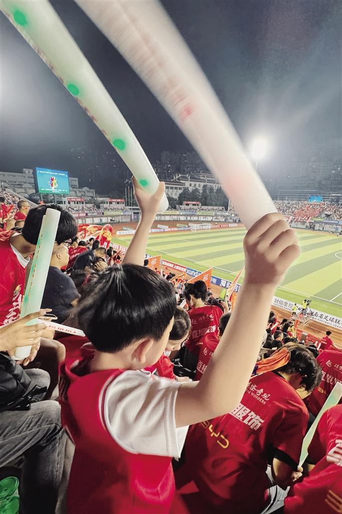 “湘超”賽事點燃游客熱情,孩童亦被感染。團結報全媒體記者 彭 寧 攝